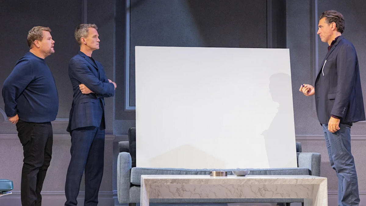 Bobby Cannavale’s character, Marc, finds himself utterly confused by the six-figure purchase of a painting acquired by his friend, Serge, played by Neil Patrick Harris. The tug of war between two strong opinions, where Marc sees a silly, expensive mistake while Serge sees a modern masterpiece, can only be won with a third player playing both sides. Enter their friend, Yvan, played by the delightfully dizzying James Corden, who’s too consumed with his own potentially expensive predicament to care about another’s art choice.